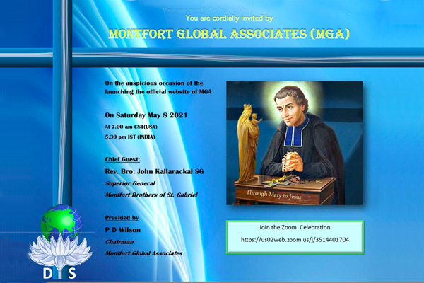 On the auspicious occassion of the launching of the website of MGA, on Saturday 8th May 2021 at 7.00am CST(Chicago) & 5.30pm IST(India). Chief Guest Rev. Bro. John Kallarackal SG, Superior General of Montfort Brothers of St. Gabriel.