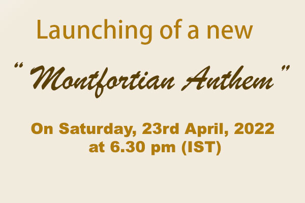 Let us meet on zoom, on Saturday, 23rd April, 2022 at 6.30 pm (IST), to further strengthen our bonding... as a tribute to Montfort...the launching of a new Montfortian Anthem...a short life story of Montfort, anticipating the feast day celebration of 28th, April. Read more...